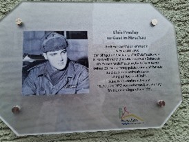 Ihm folgten 23 Teilnehmer und Teilnehmerinnen.in die Innenstadt bis zum Gasthaus Goldenes Lamm, wo uns Rudolf Wild erwartete. Dort findet man ein Gedenkschild mit dem Hinweis über Elvis Presley während seiner Zeit in Deutschland auf dem Weg zu einem Manöver in Grafenwöhr am 5. Februar 1966 dort Gast war. Auf dem Hauptplatz vor dem Rathaus beschrieb Herr Wild was er damals als 11jähriger dabei erlebt hatte.