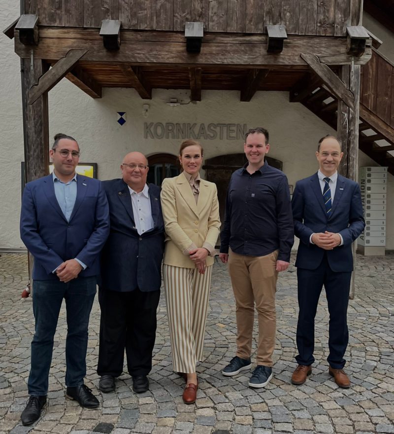 Die Experten aus verschiedenen Fachbereichen: Inga Seidel, Pfarrerin aus Waldkraiburg, Thomas Wimmer, Geschäftsführer der Fa. Nutz GmbH, Ampfing, Dr. Simon Dörr, Rektor der Grund- und Mittelschule Buchbach, Fanny Weishäupl, Studentin Soziale Arbeit, und Benjamin Grünbichler, Geschäftsführer der Suchtprävention NEON, Rosenheim.