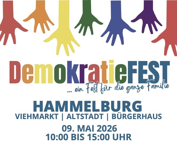 Am 9. Mai 2026 lädt der Aktionskreis „Gemeinsam stark für Demokratie“ alle Bürgerinnen und Bürger zum DemokratieFest auf den Viehmarkt Hammelburg ein. Unter dem Motto „Ein Familienfest für ALLE“ wird von 10 bis 15 Uhr ein vielfältiges Programm für Kinder, Jugendliche und Familien geboten.